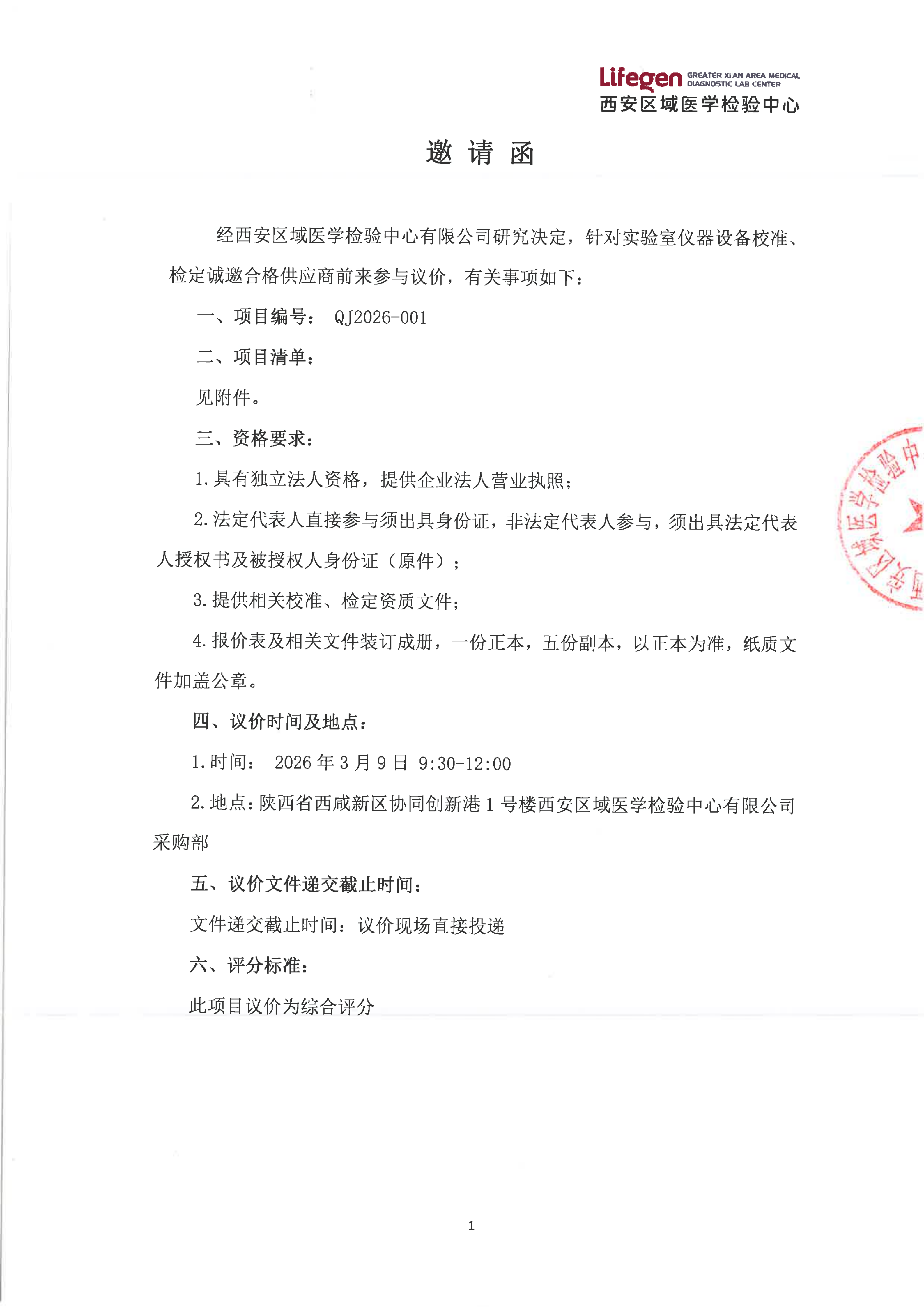 西安区域医学检验中心有限公司仪器设备校准议价